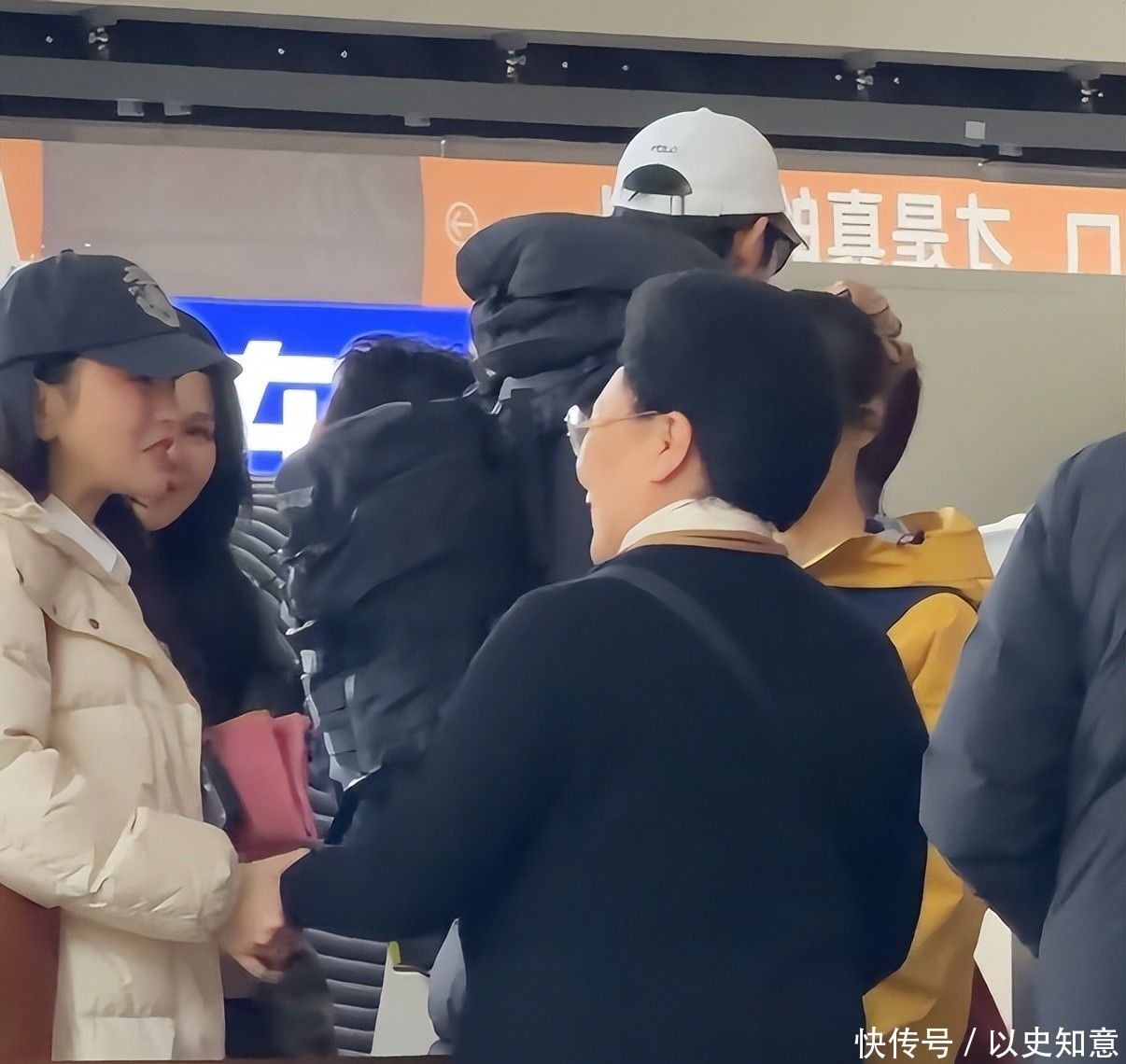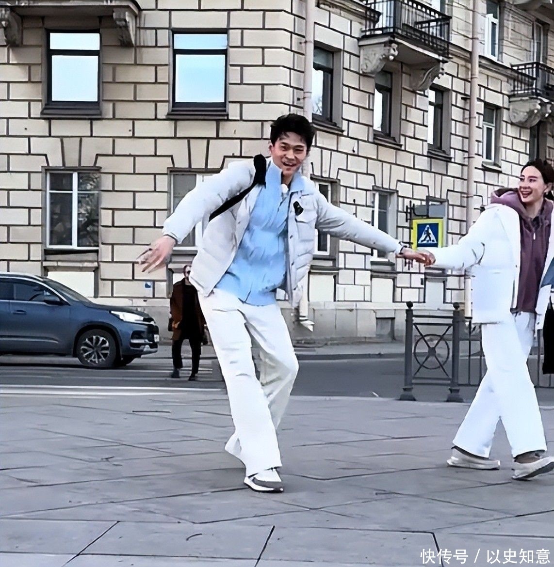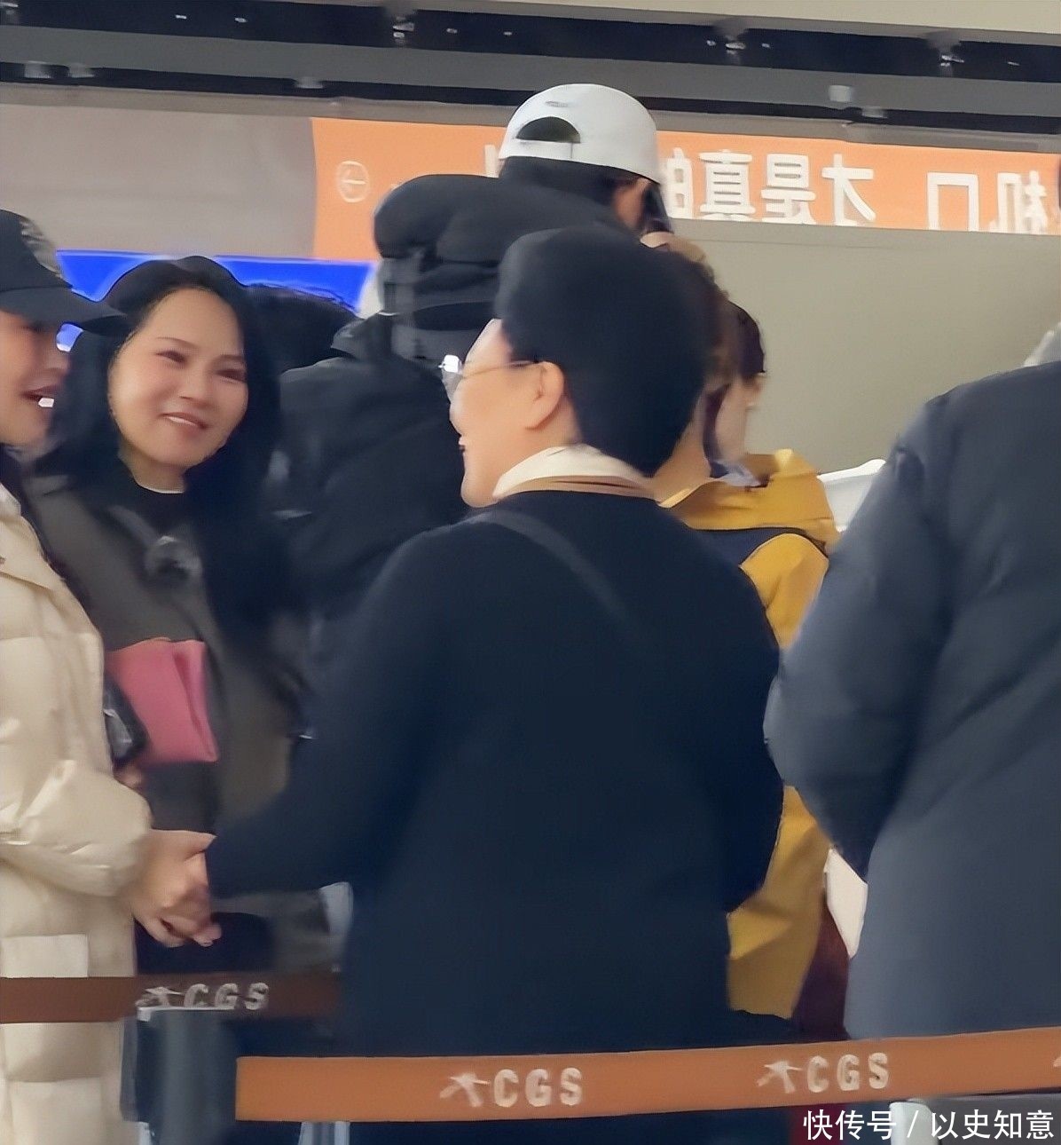 与路人合影时,亲和力扑面而来,肌肤更是白皙匀净,透出健康光泽。