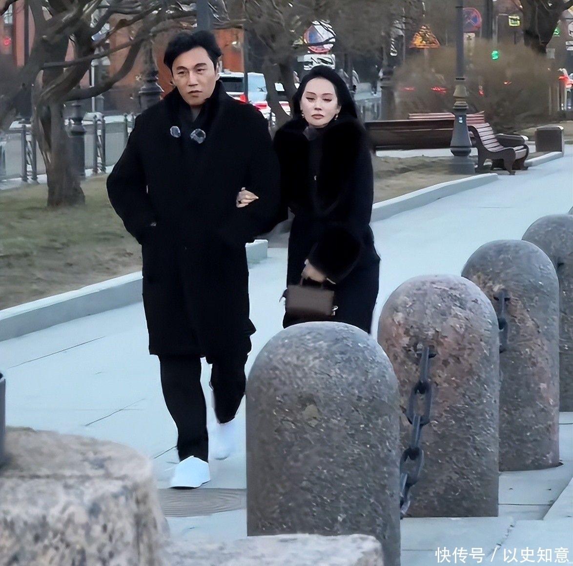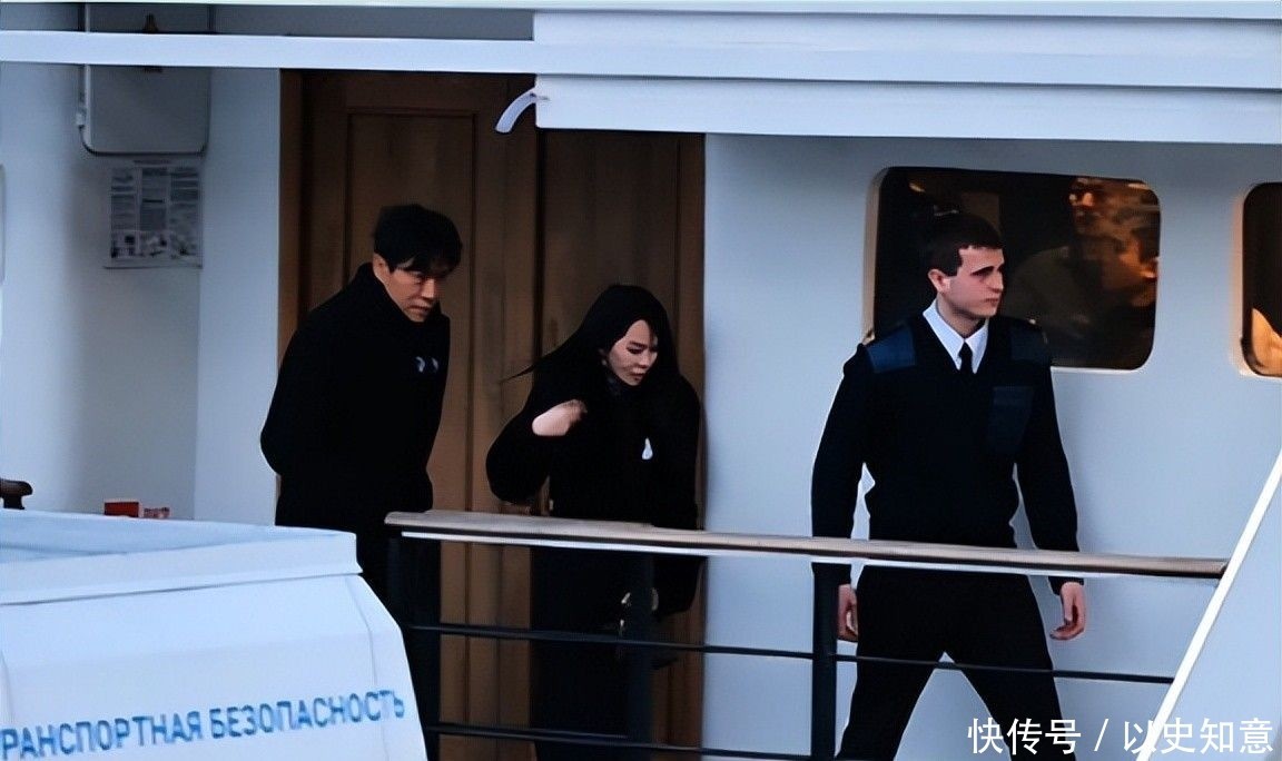 两人身着同色系长款风衣登船,神情肃穆如执行隐秘任务。