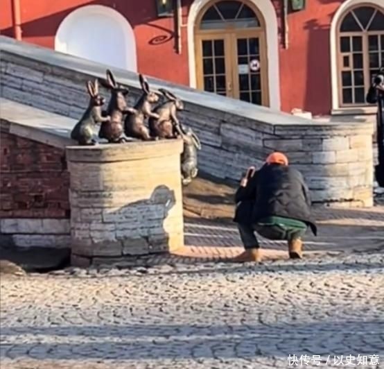 先给兔子特写,再将自己凑近镜头,完成一场独属两人的俏皮自拍。