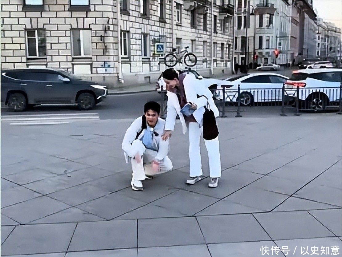 两人并肩行走时,四条纤长线条齐齐入镜,视觉冲击力十足。