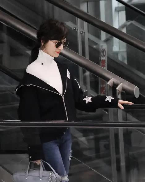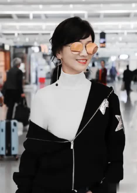 下图中赵雅芝身穿白色高领毛衣,外面是一件黑色的外套。但是这件外套最需要说的地方就是,还自带了星星的设计,为这件外套增加些许的亮点。一边的肩膀很好的露了出来,整个人看上去温柔又优雅。再者就是这件外套比较的短,正好可以营造出腰线的位置,视觉上给人显高的感觉。