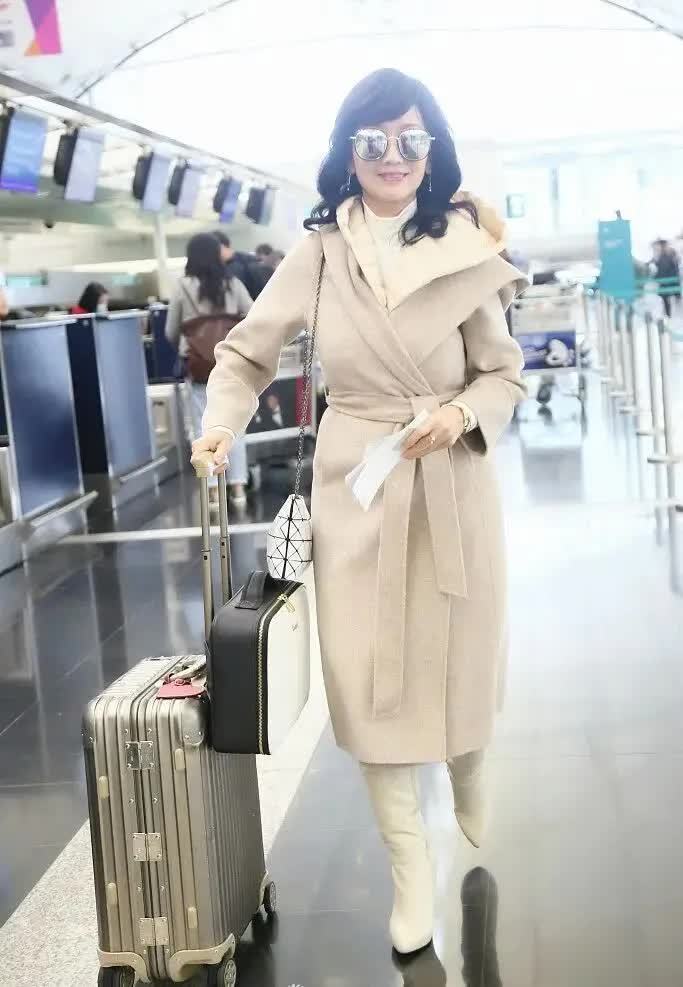 机场照中的赵雅芝将叠穿进行的十分彻底,而且深谙叠穿的技巧,一点都没有穿出土气感。内搭选择了一件白色高领,第二层选择了连帽的羽绒马甲,最后外面配上了米色的大衣,整个人看上去优雅又大方,让我不禁感叹道还是当年那个“白娘子”。