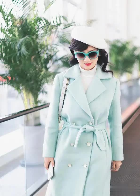 赵雅芝一年四季的穿搭都不缺彩色,冬季大衣中更是如此。想要嫩感,清新配色绝对是首选。利落的大衣版型搭配浅色内搭就好,气质和甜美感轻松拥有,